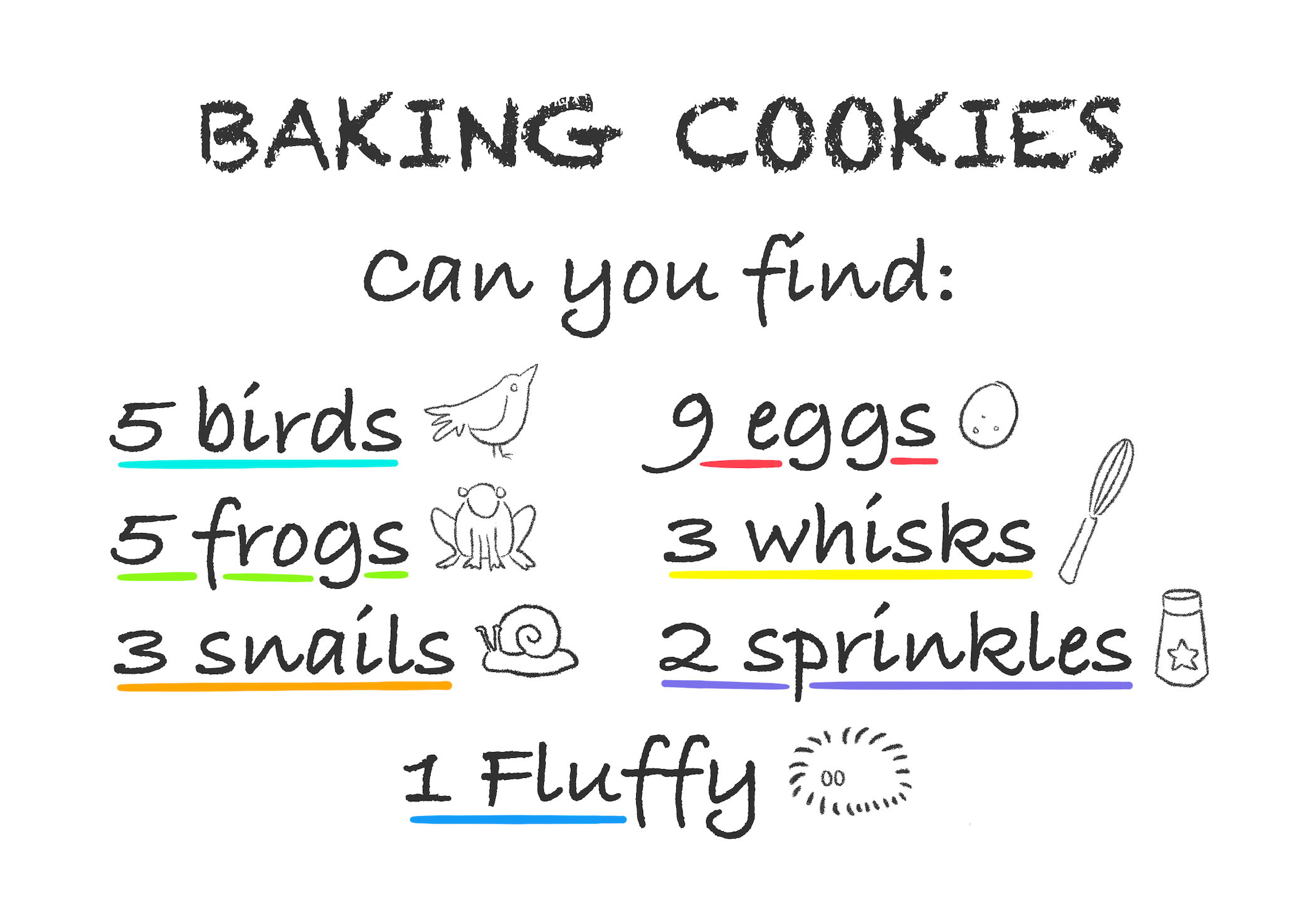 Baking cookies is very messy and so much fun! Can you help Mama Jelly find these items in the kitchen?